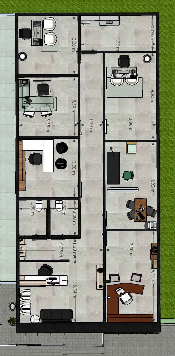 Ambiente com Recepção, banheiros, copa e ar-condicionado nas salas.